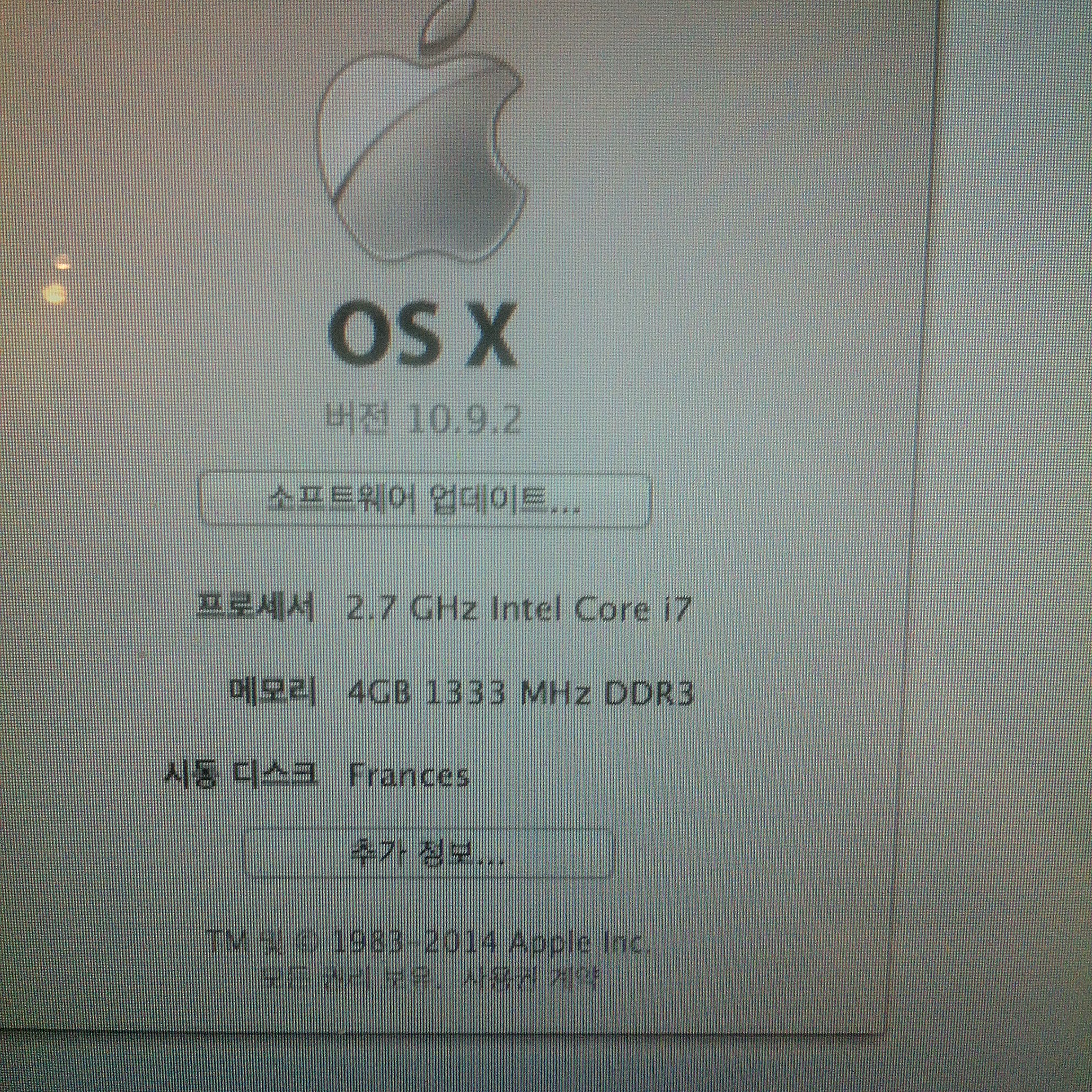 프로세서 : Intel Core i7 , 2.7GHz