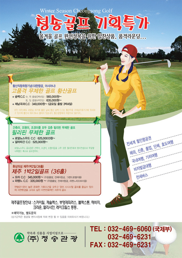 골프관광 양면전단 시안작업입니다