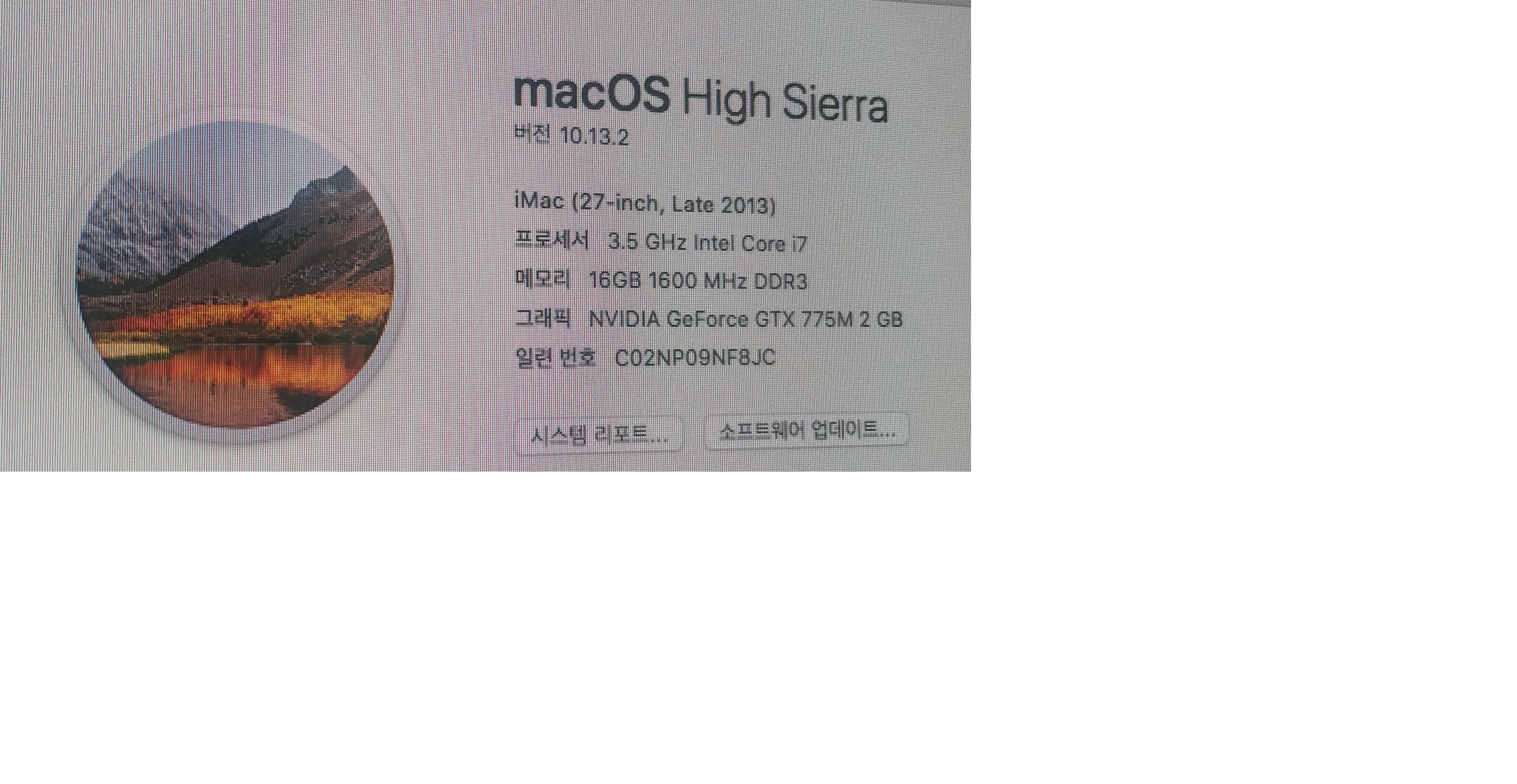 특이사항 없으며 포맷후 맥os 설치된 상태