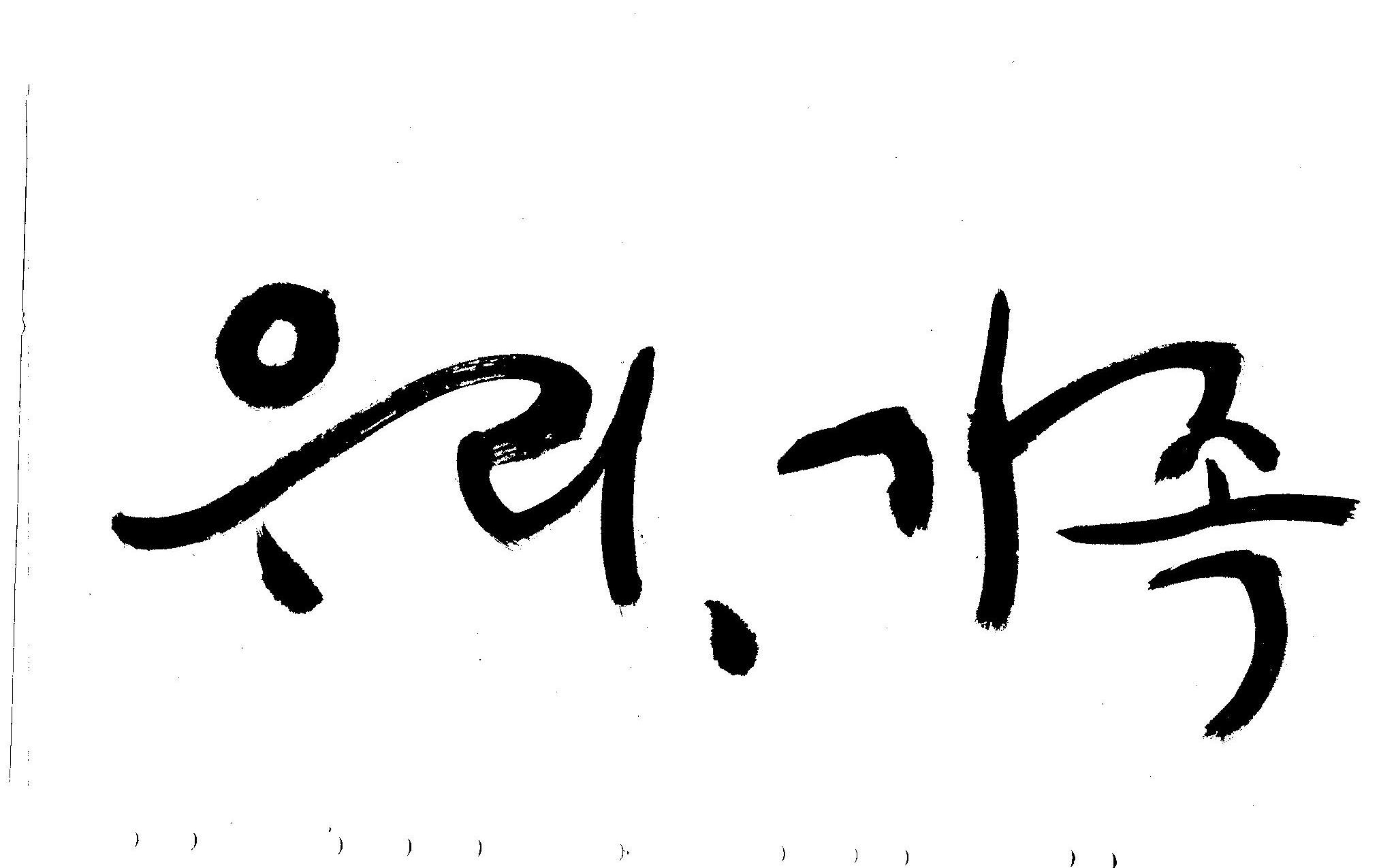기축년 신년 으뜸말 휘호 김철호 일반 0 4714 2009.01.02 20:21 어떤 으뜸말이 올해엔 필요할까... 고민하다가.. 언제나 그랬듯이 어려울때에는 무엇보다도 우리라는 공동체의 가치관이 더 필요할것 같고 가족이라는 최소의 가치가 (여기서 최소라고 하는것은 가치를 말하는 것이 아니고 가장기본적인 단위를 말하는 것입니다.) 무엇보다도 앞서야 한다고 느꼈으므로 "우리"와 "가족"을 주제어로 정했습니다. 이것은 무조건 내 생각입니다. 다른분들은 다른 주제어가 있겠죠... 어쨌든지 ... 새해엔 행복하고 건강하세요..